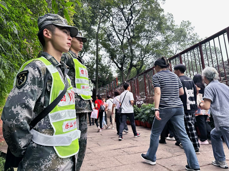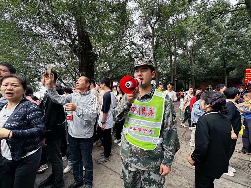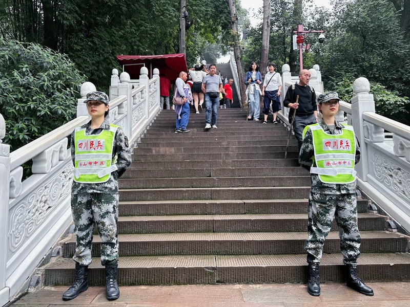 受乐山市中区武装部指派,伟德预备役民兵连51名民兵参加“国庆黄金周”大佛景区联合执勤,全力协助相关部门完成景区治安管控及其它综合勤务。