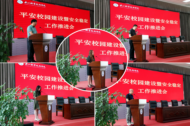 学院保卫处、党委宣传部、教务处、学生工作部、后勤处5个职能部门负责人,就部门所涉安全稳定工作在会上进行发言,总结了上半年工作,并对如何进一步做好安全稳定工作进行了部署。