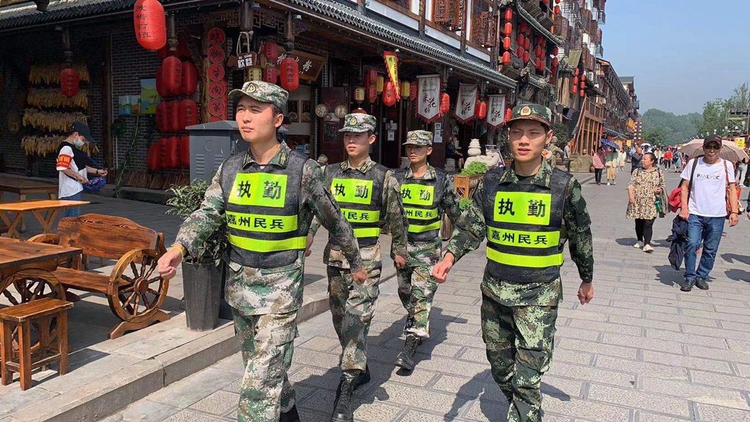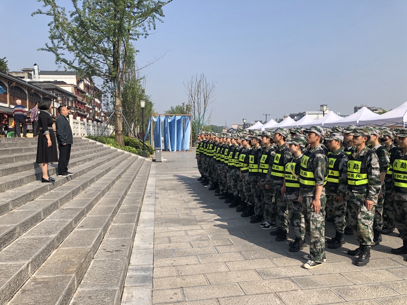 4月30日上午,学院副院长陈元进、武装部部长叶宏光前往苏稽古镇看望我院参加第一届嘉州“美食文化节”执勤的102名民兵连学生。