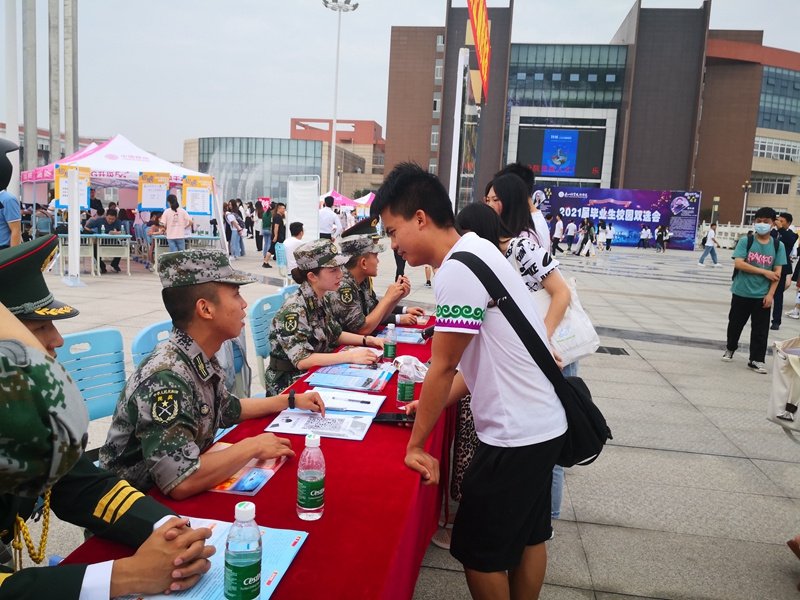 学院民兵连退役士兵面对面向大学生介绍了部队生活、亲身经历,让他们更直观感受军营、了解军营,将“中国梦,强军梦”灌输到每位咨询的大学生心中,鼓励他们携笔从戎,报效祖国。