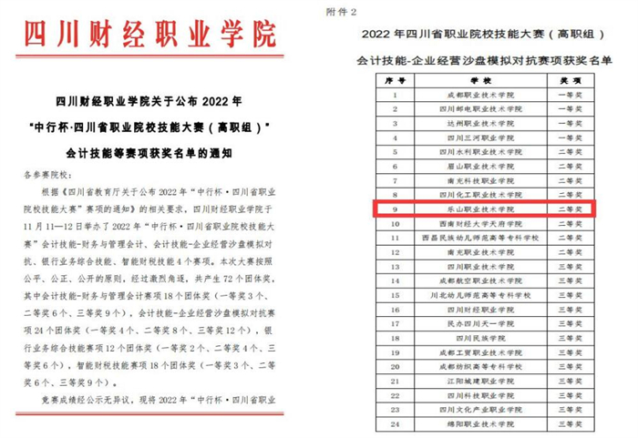 2022年11月11-12日,四川省教育厅主办、四川财经职业学院承办的2022年四川省职业院校技能大赛会计技能“企业经营沙盘模拟对抗赛项”成功举办,来自全省41支代表队参赛。伟德国际victor1946财经管理系大数据与财务管理专业2020级罗国宇、黄安菠、敖雨和大数据与会计专业2021级黄丽同学组成的竞赛团队,在宋子睿和李弘知两位老师指导下,代表学院参加了此次比赛,最终经过激烈角逐获二等奖。