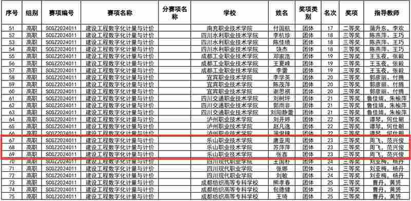 在2024年“中银杯”四川省职业院校技能大赛(高职组)建设工程数字化计量与计价赛项中,伟德国际victor1946代表队凭借出色的表现荣获三等奖,展现了学院在工程造价数字化领域的专业实力和教学成果。
