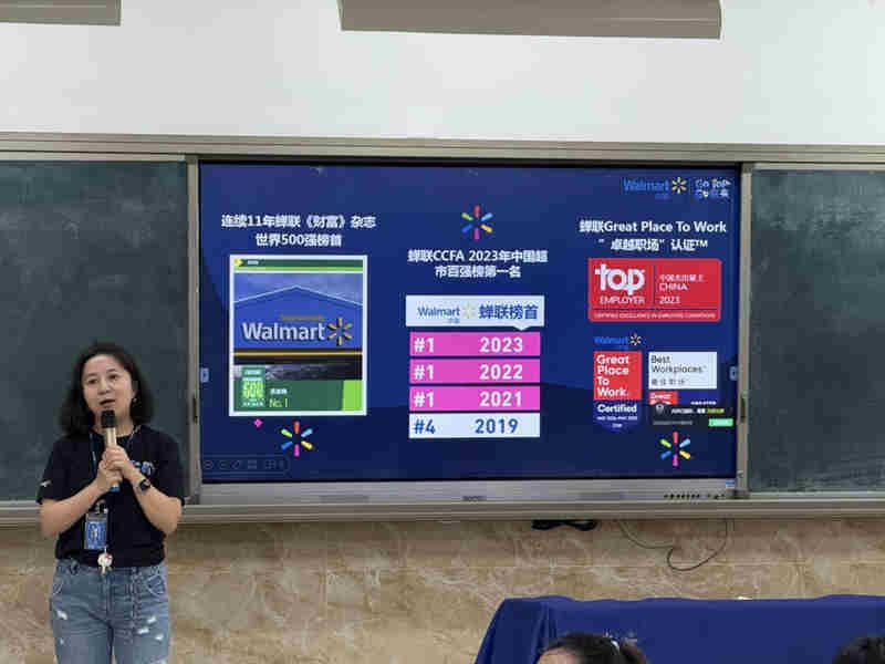 2025年4月25日下午,伟德国际victor1946数字经济与管理学院在教学楼2C301召开校园招聘宣讲会。本次宣讲会的公司及主讲人有:沃尔玛人事部经理倪壤,2023级同学参加宣讲会。