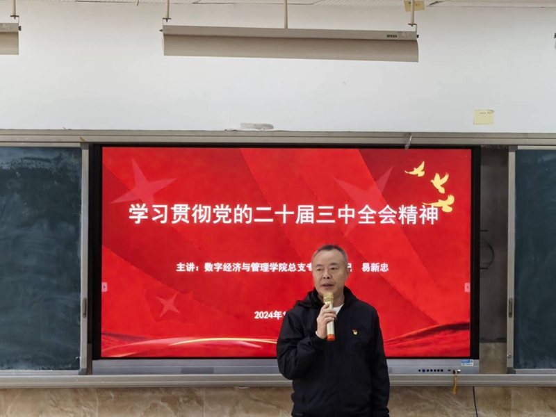 2024年10月10日中午13:00时,伟德国际victor1946数字经济与管理学院党总支分党校2024年秋季培训班开展第二讲,由党总支专职副书记易新忠同志为同学们作党章学习、二十届三中全会精神学习专题讲座,全院共105名同学参加了此次培训。