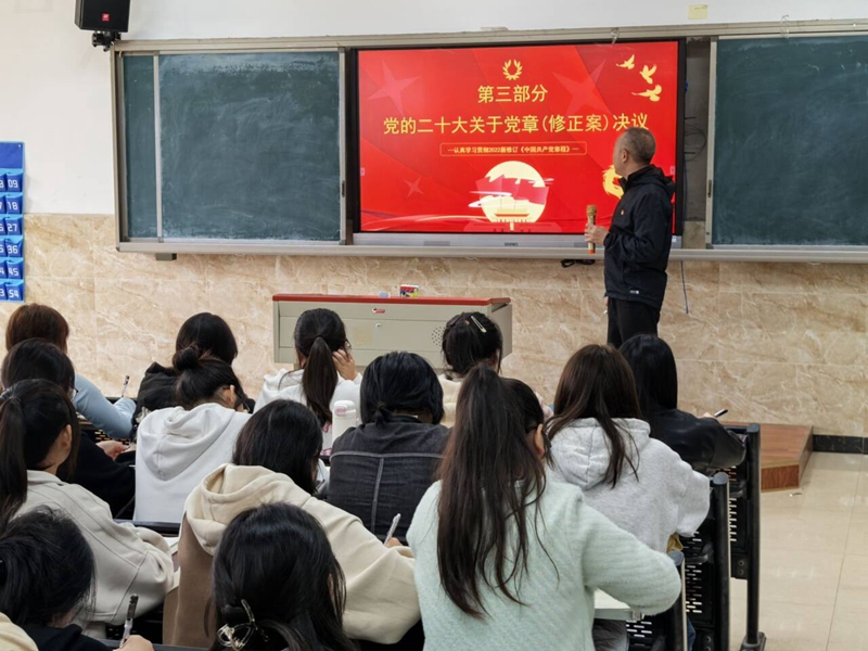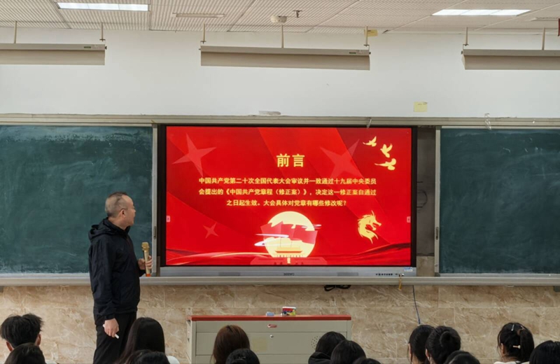 易书记向同学们重点讲解了二十届三中全会的报告、《中国共产党章程》基本概述、党章修正案、党的二十大关于党章修正案决议等方面,为同学们全面且深刻的解析了学习二十届三中全会精神的重要意义,以及二十大对党章的重要修改。