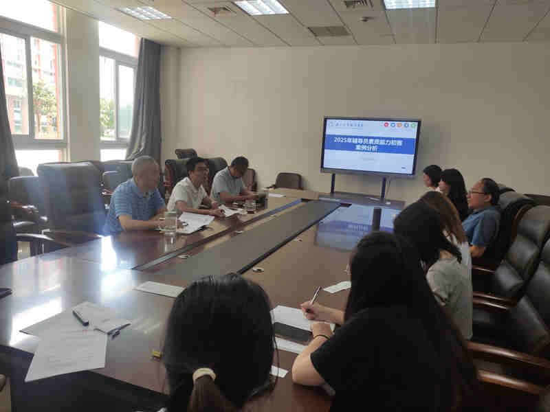 2025年5月28日,数字经济与管理学院在二号教研楼110会议室开展辅导员职业能力比赛。数字经济与管理学院党总支书记黄泓轲、院长邵其会、专职副书记易新忠、副院长何瑞参会,全体专兼职辅导员参加比赛,比赛由易新忠主持。