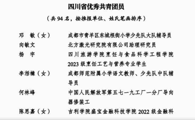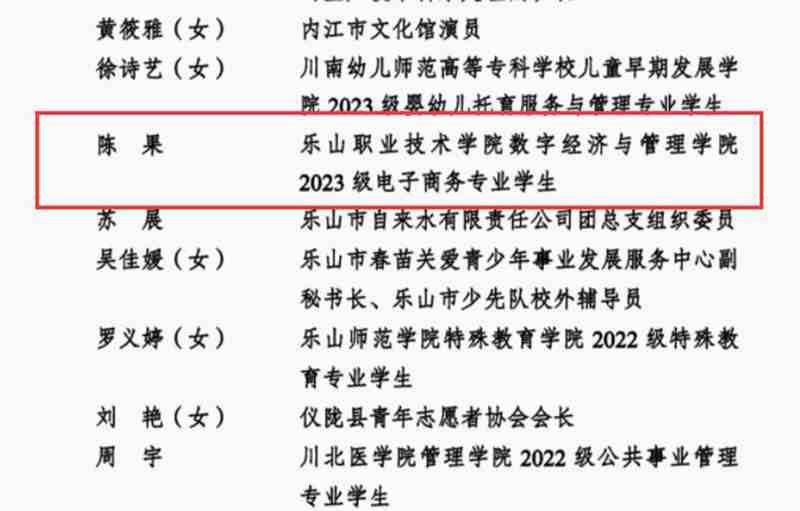 经省委功勋荣誉表彰工作领导小组批准,近期,共青团四川省委、四川省青年联合会启动2025年“四川青年五四奖”表彰工作,经推荐、评审、公示等程序,评选产生四川青年五四奖章获奖个人20名、获奖集体10个,四川省五四红旗团委45个、四川省五四红旗团支部45个、四川省优秀共青团员94名、四川省优秀共青团干部86名。伟德国际victor1946数字经济与管理学院电子商务专业2023级学生陈果获评“四川省优秀共青团员”称号。