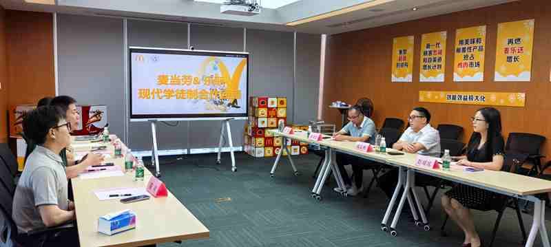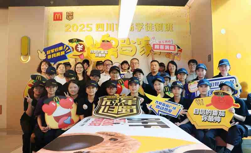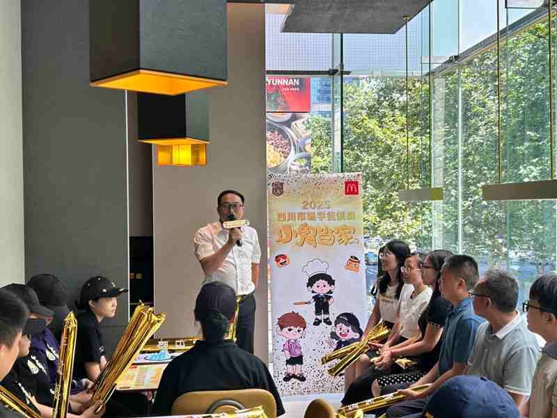 上午11时,校企双方在成都百扬大厦举行现代学徒制班交流座谈会。金拱门营运总监韩光明、人力资源部经理陈祥等企业代表出席。会上,成定彬肯定双方八年合作成果,校企双方围绕“麦苗班”人才培养、学生实习进展、未来合作方向展开深入交流,并就课程体系升级、数字化创新合作等方向达成共识。会后,成定彬一行参与“小鬼当家”实践活动总结会,肯定学生在门店运营中的表现。他对学生提出期许,希望他们珍惜实践机会,锤炼本领、提升素养,未来成为行业骨干,并向全程指导的企业导师表达诚挚感谢。
