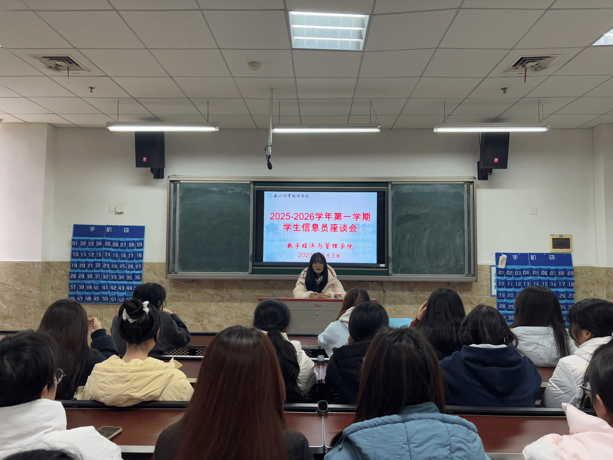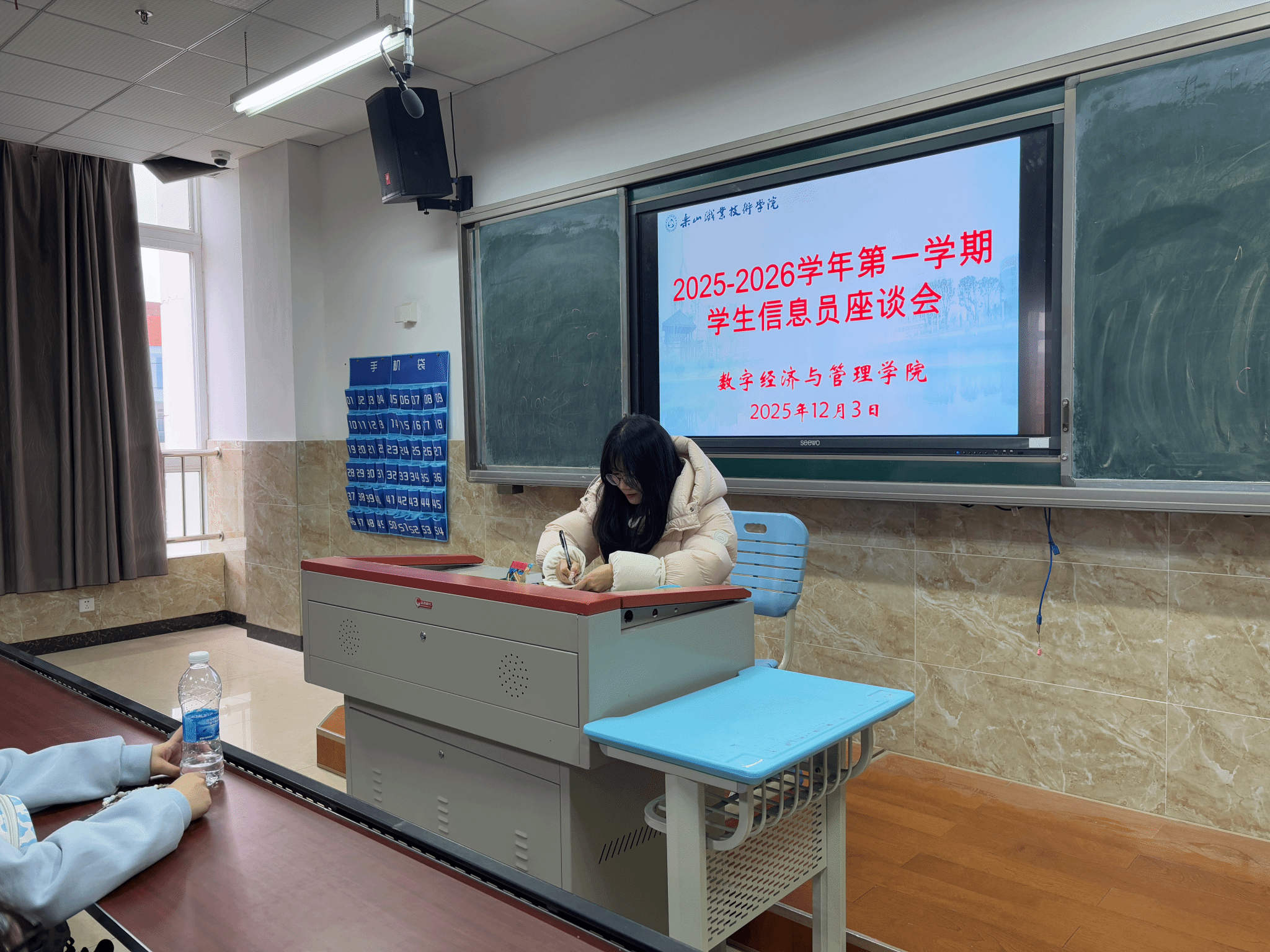 2025年12月3日下午,伟德国际victor1946数字经济与管理学院在教学楼1B404召开11月教学督导信息员座谈会,数字经济与管理学院督导干事刘佳敏老师及各班信息员参与此会议。