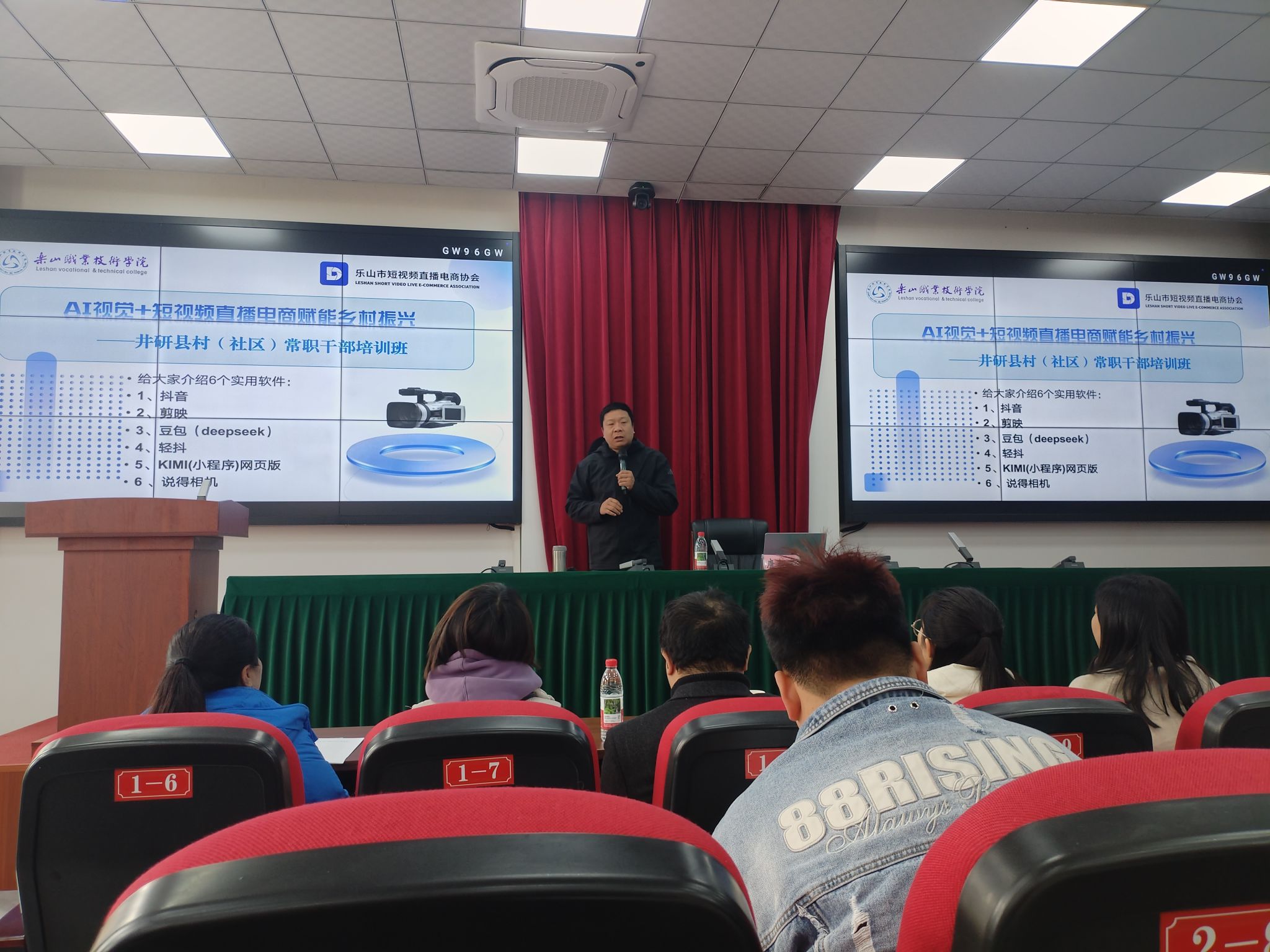 培训不仅为井研县基层干部搭建了学习电商新知识、掌握 AI 新技能的平台,更推动学校数字经济类专业与地方乡村振兴需求深度对接,为后续校地在电商人才培养、乡村产业赋能等方面的进一步合作奠定了良好基础。参与培训的干部们纷纷表示,培训内容实用、针对性强,有效填补了自身在 AI 电商领域的知识空白,将把所学技能运用到实际工作中,助力本地特色产业提质增效。