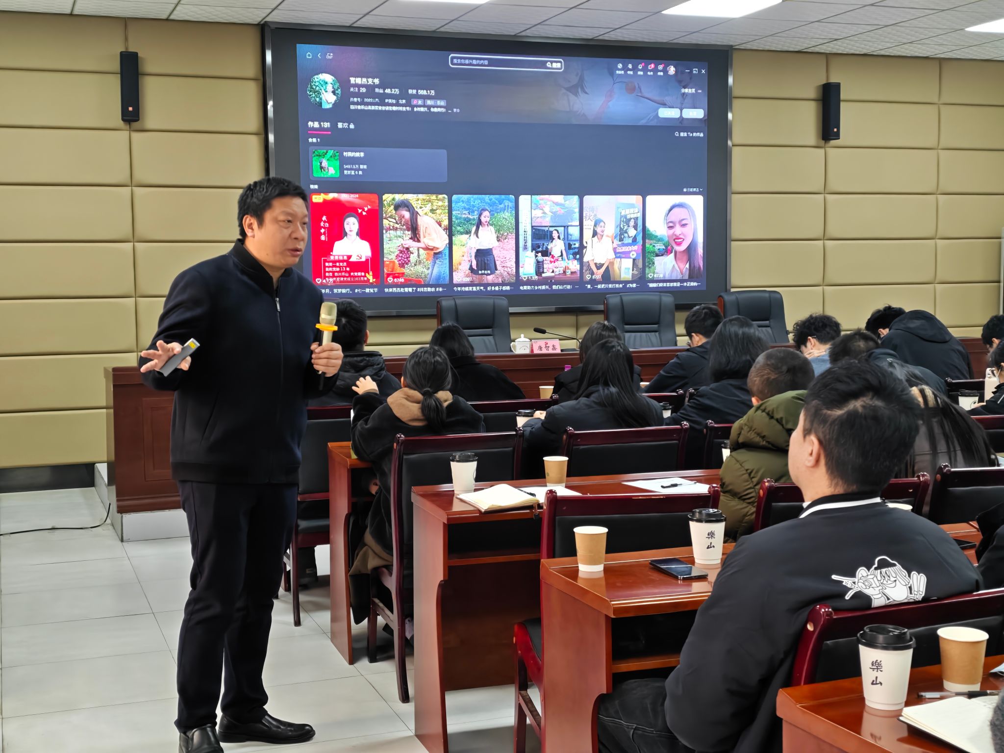 12月17日下午,乐山市市中区2025年党外中青年干部暨统战干部培训班在市中区民主党派活动中心顺利举办,伟德国际victor1946唐智鑫、张荣荣老师参与培训,本次培训覆盖面广、参训群体多元,涵盖各镇(街道)统战委员,各镇(街道)及区级各部门党外年轻干部,各民主党派、区新联会、区知联会、区网联会等统战组织成员共计56人,伟德乐山市唐智鑫新媒体电商创新工作室领衔人唐智鑫开展了“AI视角下短视频直播赋能宣传”专题讲座。