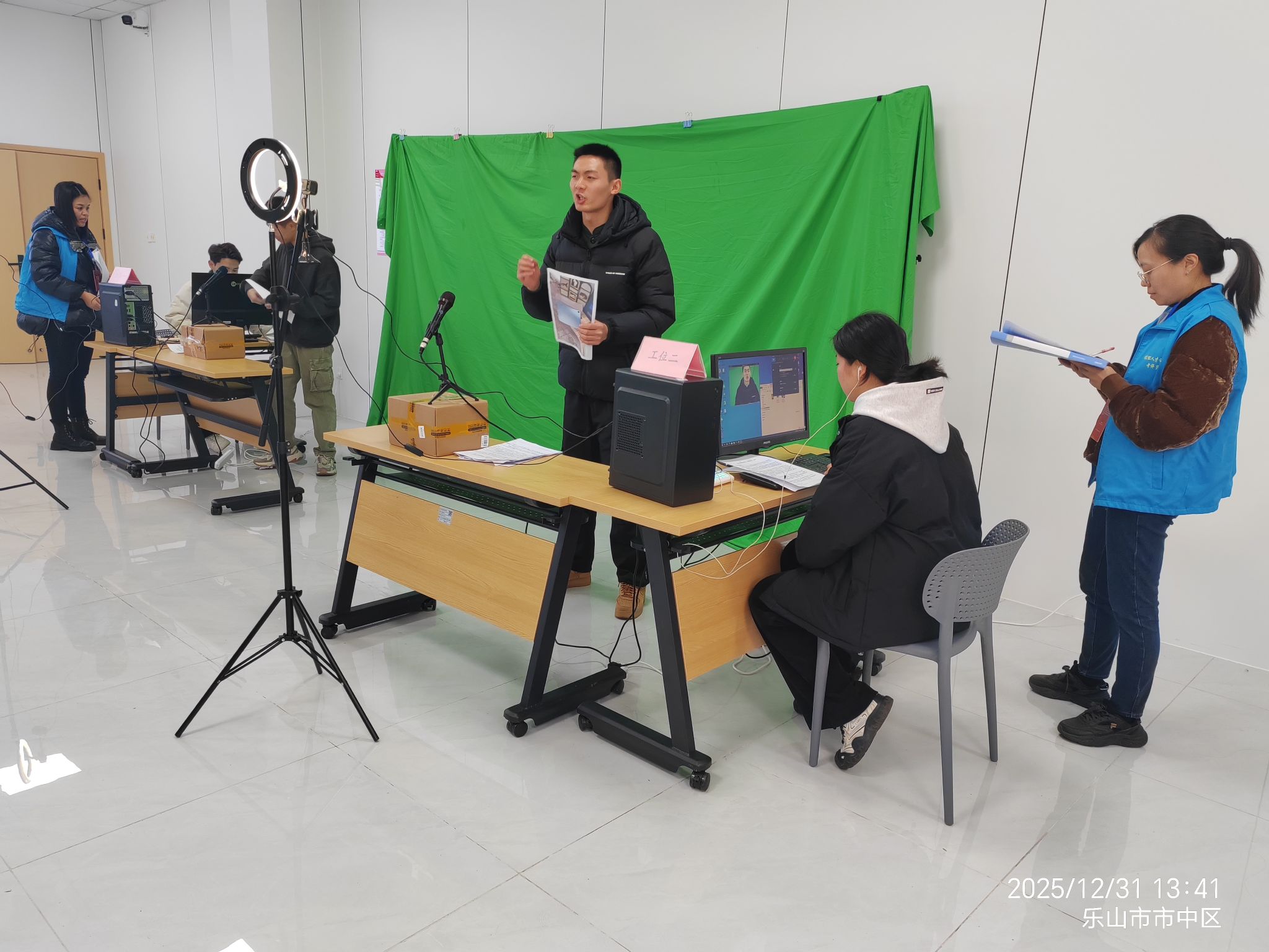 2025年12月31日,数字经济与管理学院武会玲、杨媚两位教师,受乐山市人力资源和社会保障局、商务局联合邀请,前往市中区开展互联网营销师(初级+高级)职业技能等级实操考评工作。