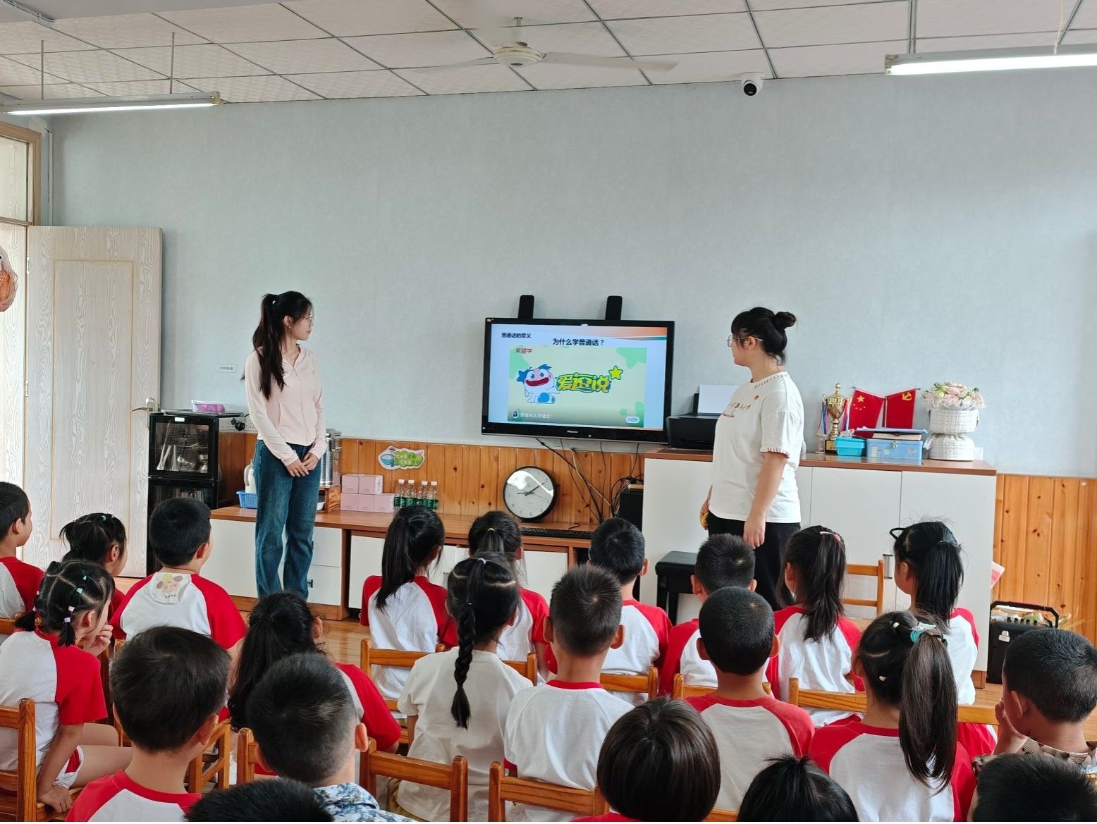活动伊始,宣讲团以“阿牛放牛”绕口令和“太阳能,亮晶晶”科学儿歌为切入点,通过趣味互动提升幼儿普通话表达能力,让孩子们领略中华语言魅力。