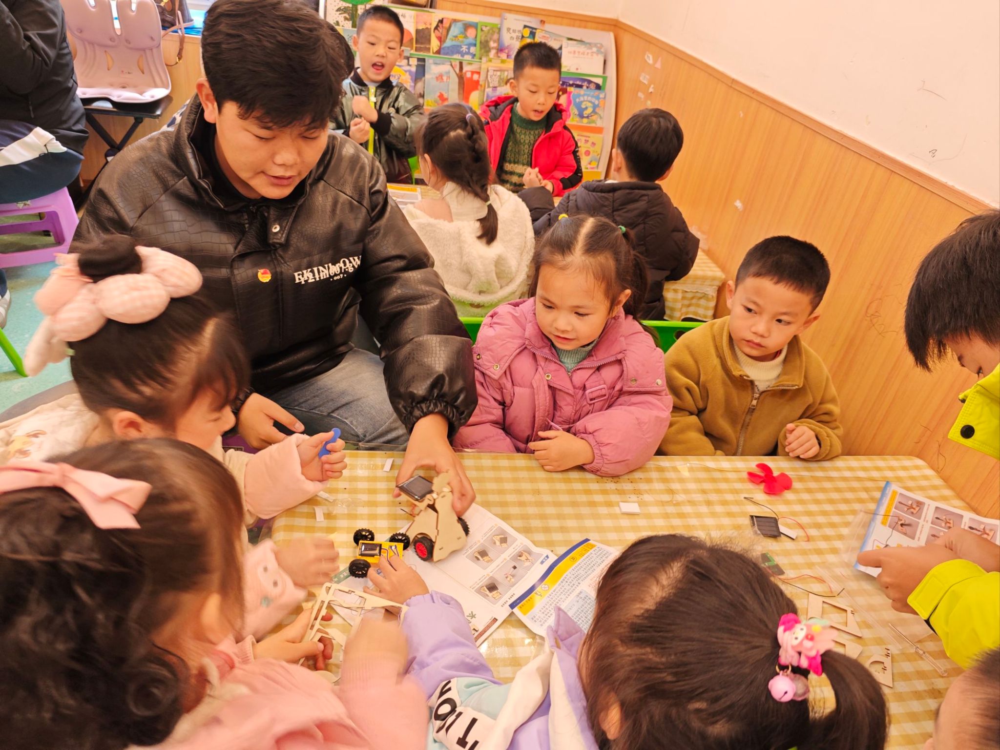 为持续激发小朋友们的科学兴趣、弘扬中华优秀传统文化,2025年12月10日上午,新能源与材料学院“科普宣讲与文化传承”团队在党员教师邓茹、张艳琳、赵田丽的带领下,走进肖坝贝贝佳幼儿园,开展了一场融合科技启蒙与非遗体验的社会实践培训活动。
