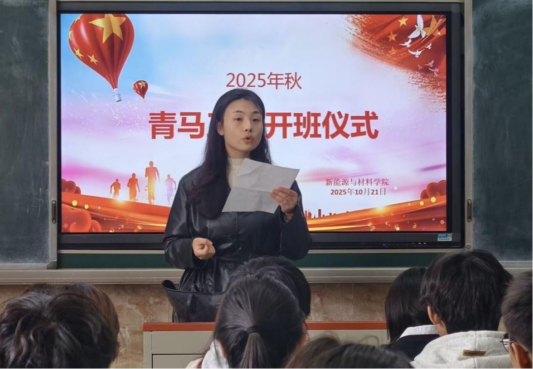 为了贯彻落实党的教育方针,加强青年马克思主义者的培养,提高青年的思想政治素质和业务能力,进一步强化青年的政治意识和大局意识,使他们能够坚定不移听党话、跟党走,努力担负起青年使命。新能源与材料学院于2025年10月21日在教学楼1B107组织开展“青马工程”培训开班仪式,二级学院专职副书记邓丰、全体参训学员参加,分团委书记张艳琳主持。