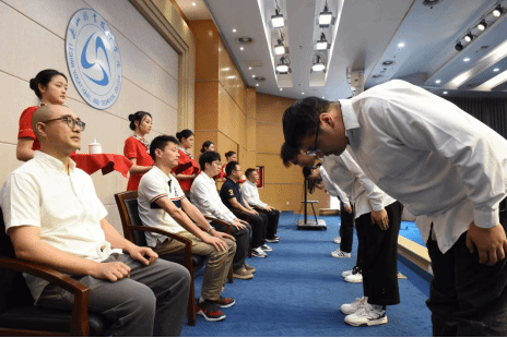 拜师仪式环节,学徒代表向导师行鞠躬礼、敬拜师茶,以传统礼仪表达对师恩的敬意与勤学笃行的决心。现场气氛庄重而温馨,师徒结对场景令人动容。
