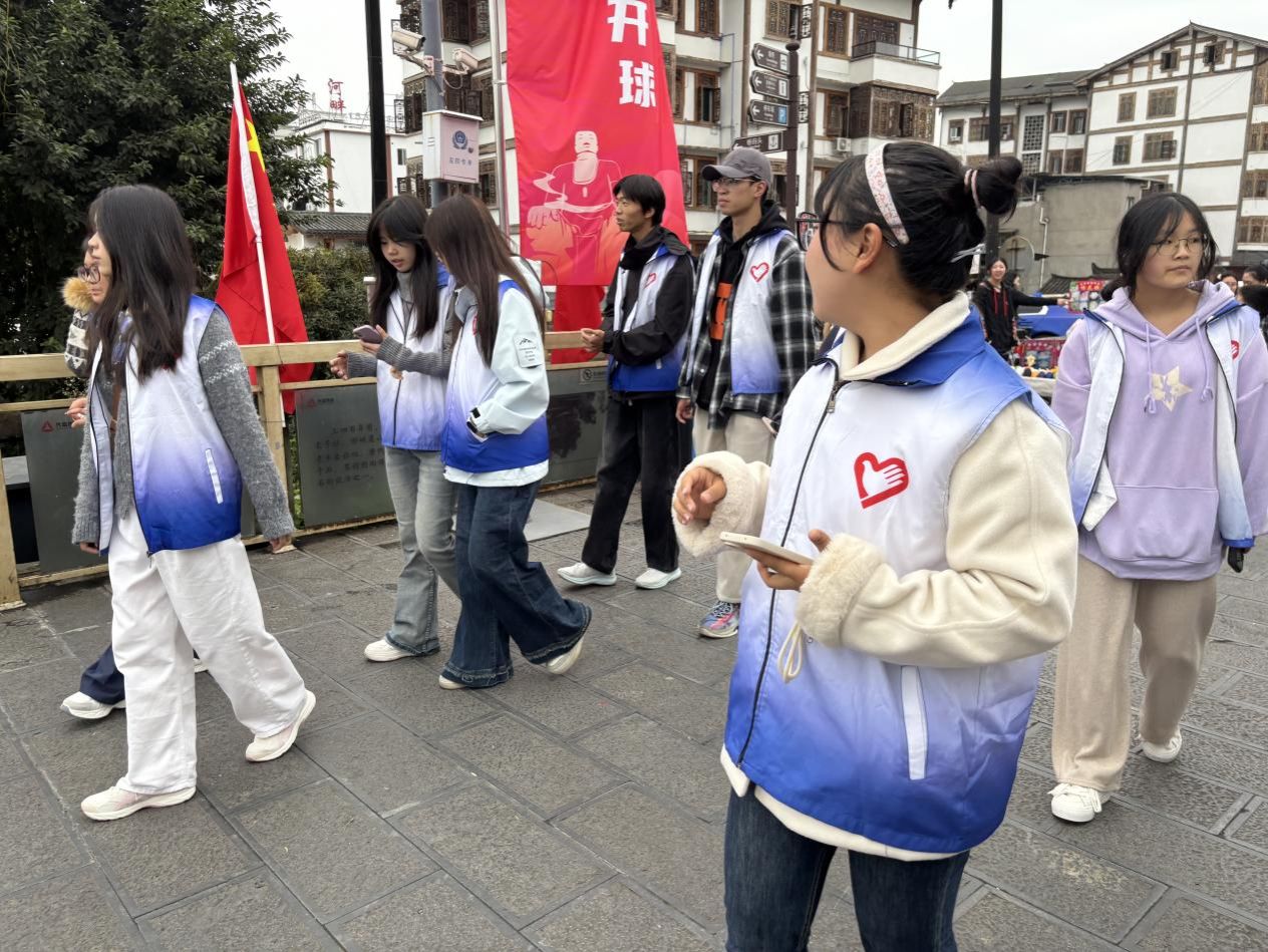活动开始,宣传部部长邓诗黎锋带领学生深入了解苏稽古镇历史,从老戏台到古镇历史,重点围绕古镇文化、饮食习惯等展开宣讲,结合实际情况、日常生活等,追根溯源让同学们直观感受整个古镇的风土人情。同时,引导学生将古镇未来发展与专业相结合,讲述文旅创新发展与人工智能融合,现场氛围热烈且富有成效。在廊桥我们回顾古镇的青瓦木墙,面向新时代的勃勃生机。感受时代完美地诠释了苏稽如何在时光的流转中,将过去、现在与未来紧密相连。