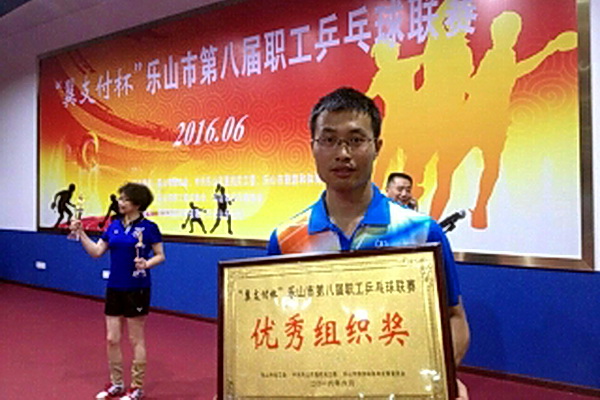 6月3日,由市总工会、市直机关党工委、市旅体委联合举办的“翼支付杯”乐山市第八届职工乒乓球联赛在乐山市职工文体活动中心拉开“战幕”。我院教职工乒乓球代表队在学院工会副主席罗宣祝的带领下参赛。市委常委、市委秘书长宁坚在开幕式上致辞,省总工会副主席武晓鹏出席开幕式并宣布联赛开幕。