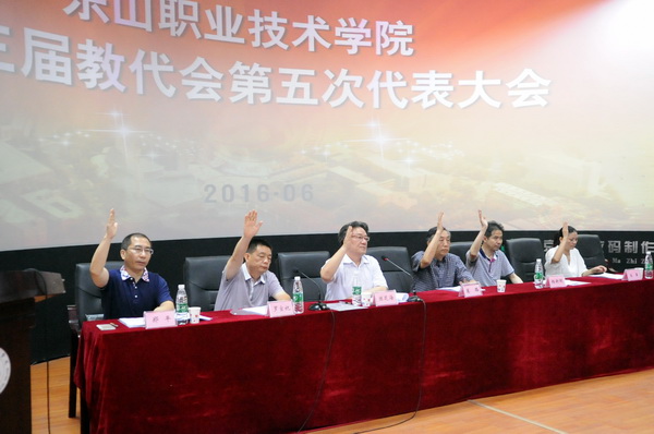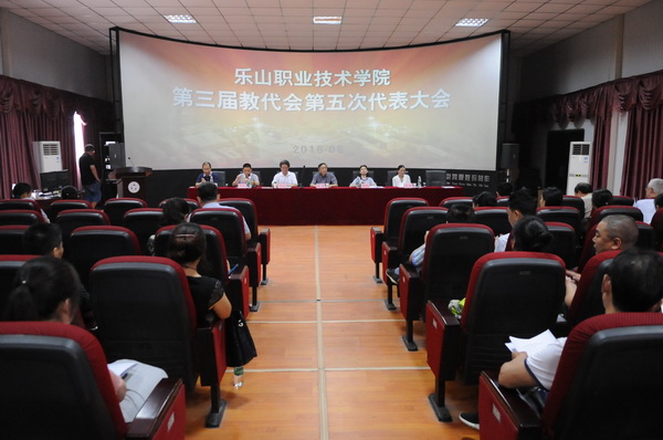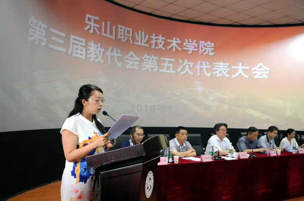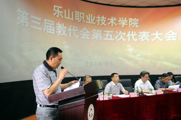 2016年6月23日下午,学院工会在旅游系3D实训室组织召开第三届教职工代表大会第五次会议,大会主席团由蹇路、陈芝海、杨新明、罗宣祝、郑平、王萍6人组成,党委副书记、纪委书记陈芝海主持大会。