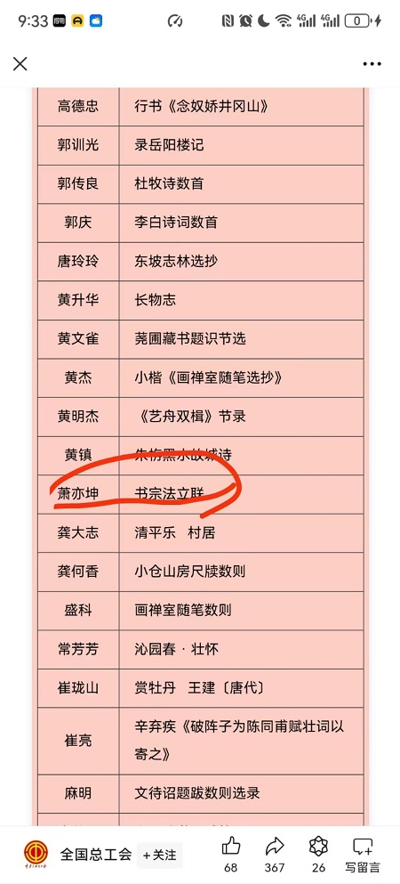 萧亦坤老师的书法作品《书宗法立联》经专业评委线下评审,入展全国职工文体示范活动、“中国梦·劳动美”第九届全国职工书画展。