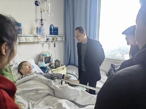 在病房中,张佳详细询问了解了黄海燕的病情及治疗情况,鼓励黄海燕老师悉心调养,积极配合治疗,保持乐观心态,争取早日康复。对黄海燕生病期间一直承担其照料任务的黄海燕妹妹也给予关心慰问。