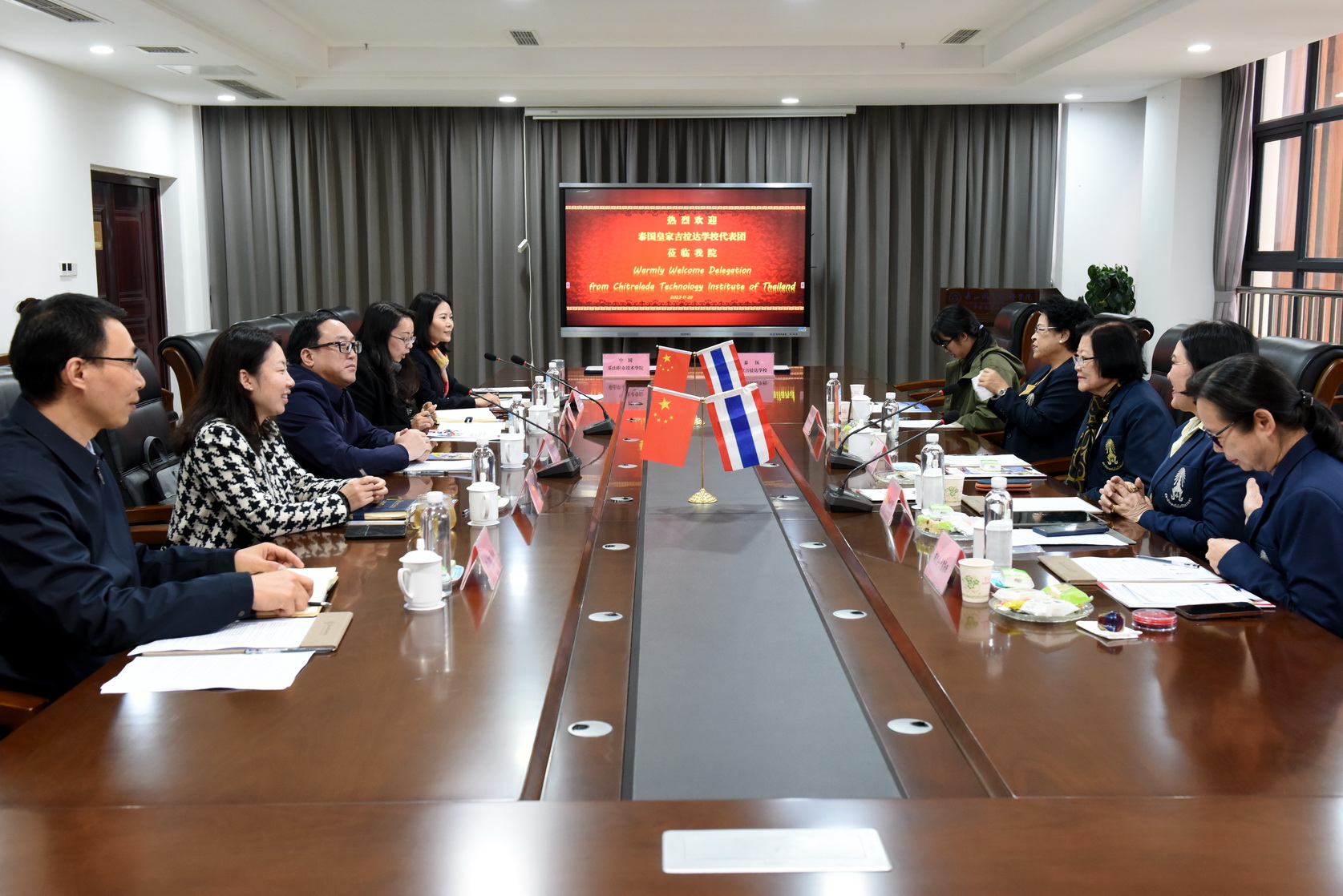 2023年11月20日,泰国皇家吉拉达技术学院校长昆宁·苏曼坦·普朗布一行4人到访伟德,交流座谈会在学术交流中心2001会议室举行。学校党委书记成定彬,党委委员、副校长周芹,教务处、国际学院、文旅学院负责人参加交流座谈,座谈会由周芹主持。