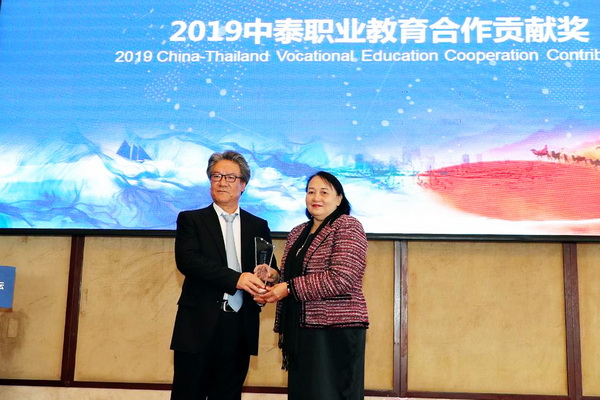 大会期间,泰国教育部职业教育委员会、泰国一带一路基金会,向在中泰合作办学中作出突出贡献的个人与单位颁奖。伟德国际victor1946荣获“2019中泰职业教育合作贡献奖”,泰国教育部职教委副秘书长巴塔玛女士为学院颁奖。