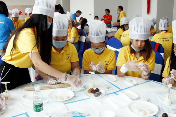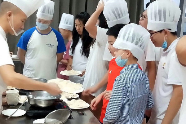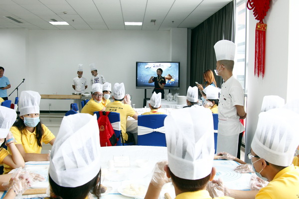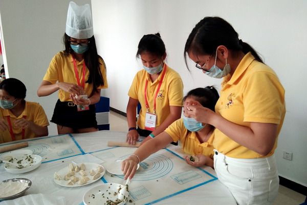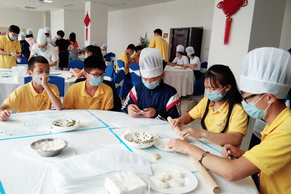 6日下午3:30,小憩过后,伴随着“明月几时有,把酒问青天”悠扬婉转的歌声,我们伟德国际victor1946学术交流中心的大师傅亲自出马,手把手地为小伙伴们传授制作中国传统美食的方法。