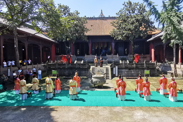随后,来自西班牙乌蘭教育集团的乌兰校长和女儿希吉尔身着传统汉服,亲身体验了在文庙大殿前举行的成人礼,感受儒家文化。