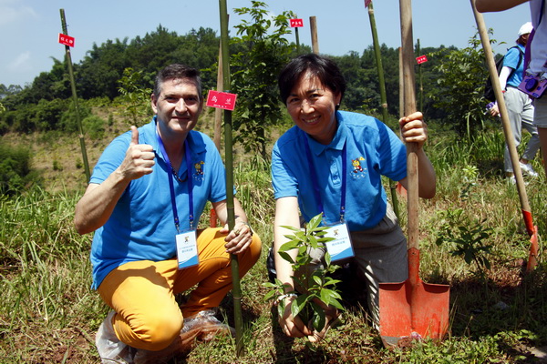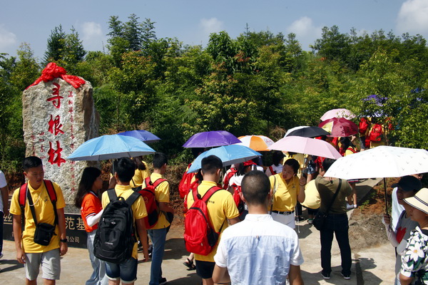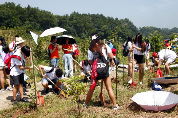 上午10:30,营员们一行来到了位于犍为县寿保乡的金楠山谷生态园开展“寻根林”植树活动。在“寻根林”基地里,营员们满怀情谊地亲手种下了一棵棵金楠小树苗,并郑重地挂上了印有自己姓名的挂牌,为本次“寻根之旅”留下了美好的记忆。