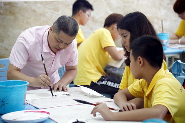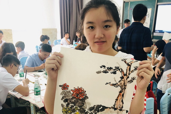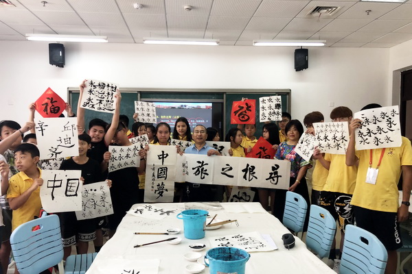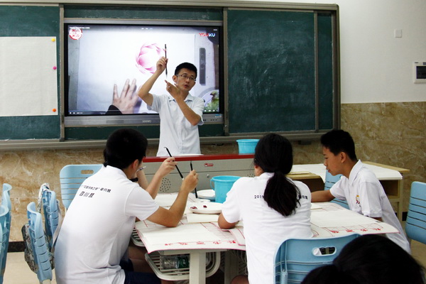 8日,“2019中国寻根之旅”四川乐山营进入到第六天,伟德国际victor1946特邀学院书法协会会长郑平和田瑞海老师,艺术设计系美术老师张雷、马世新为营员们教授中国书画。