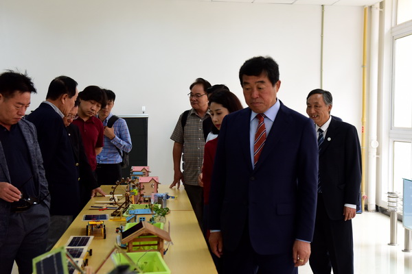 韩国安山市政府代表团一行还参观了学院光伏新能源实训室和实训工厂。