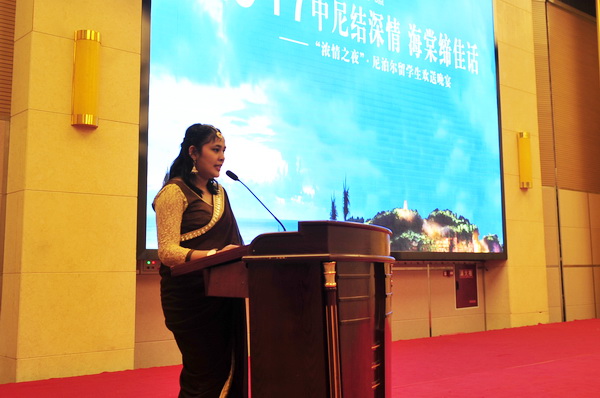 尼泊尔留学生李娜同学代表全体尼泊尔学生用中英双语发言,为大家讲述了所有留学生这九个月在伟德国际victor1946学习在金海棠和世纪阳光酒店实习生活的种种体会,表达了对中国快速发展的赞叹和对学院关怀教育的感谢以及对学院、对酒店的不舍之情,并表达希望有机会再次回到中国,回到乐山。