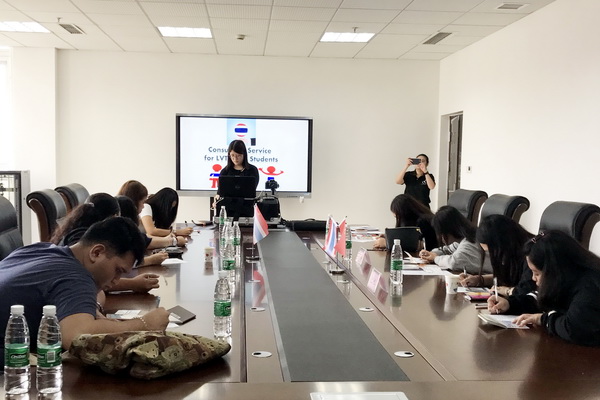 座谈会后,刘琳领事一行为我院9名泰国新生开展了领事服务活动。