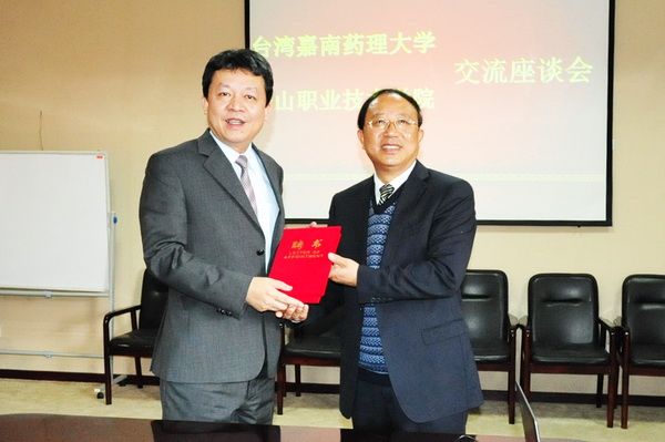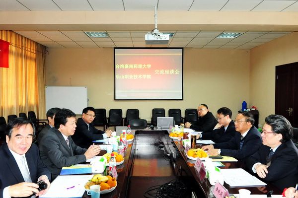 214年3月21日,台湾嘉南药理大学校长李孙荣一行4人来我院交流访问,学院院长薛建平、党委副书记、纪委书记陈芝海、副院长刘忠,以及院办、宣传部、人事处、教务处、计财处、药学系、海天公司负责人参加交流座谈。双方就推动师生进一步交流、学习和深造,进行了深入探讨。