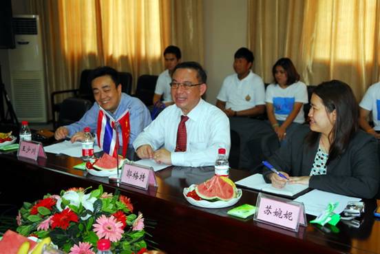 郭梅特总领事对学院与泰国合作所取得的成绩感到十分高兴,表示将继续加强同学院的交流与合作,扩展合作交流项目,推动合作交流取得更好的成果。