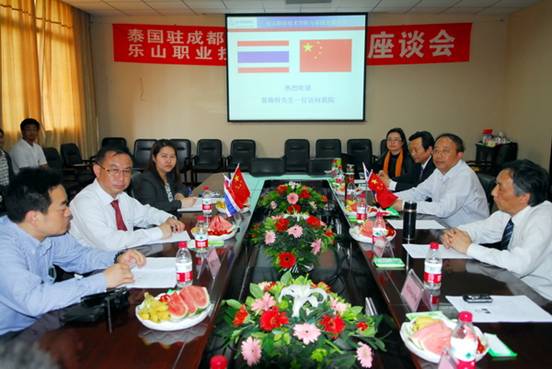 4月17日下午,泰国驻成都领事馆新任总领事郭梅特先生、领事苏婉妮女士一行访问我院。在三楼会议室,学院与郭梅特总领事一行就师生交流、合作办学及中泰文化交流等方面进行了友好交流和座谈。乐山市外事办公室副主任钟为济,学院党委书记蹇路、院长薛建平、党委副书记、纪委书记刘文华以及学院外事办公室、宣传部负责人、学院泰国留学生参加了座谈会。