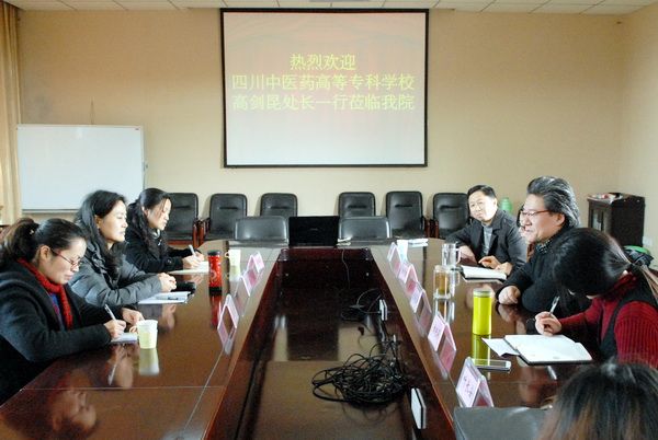 2014年3月4日,四川中医药高等专科学校一行三人在科技外事处处长高剑昆的带领下到我院参观访问。
