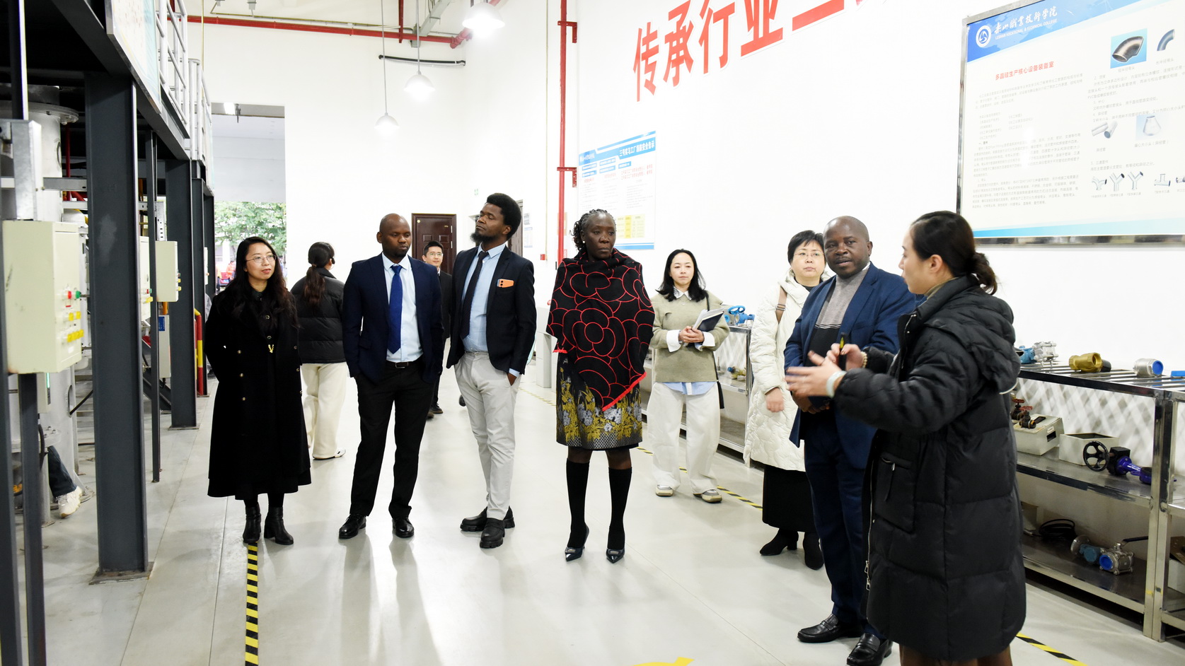 25日下午,在学校党委委员、副校长周芹的陪同下,赞比亚代表团一行饶有兴趣地参观了学校青江武术基地并观摩了留学生武术课堂展示;在嘉州记忆地情馆,了解了乐山的历史沿革和非遗文化;在智慧能源中心,系统了解了伟德水源热泵系统;参观考察了医学实训中心、智能制造协同创新中心、工业机器人系统集成实训中心、光伏新能源虚拟仿真实训中心等实训基地。