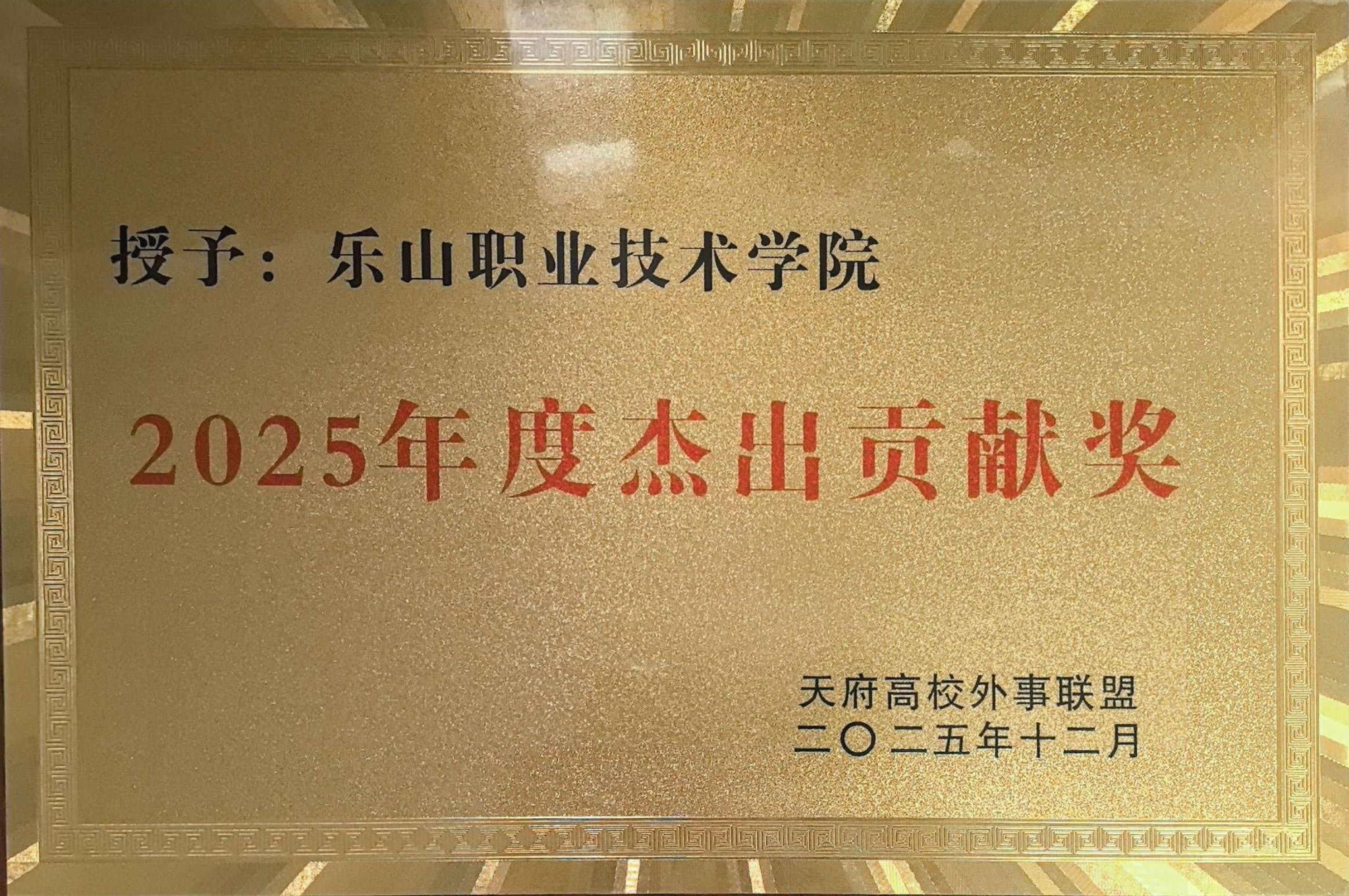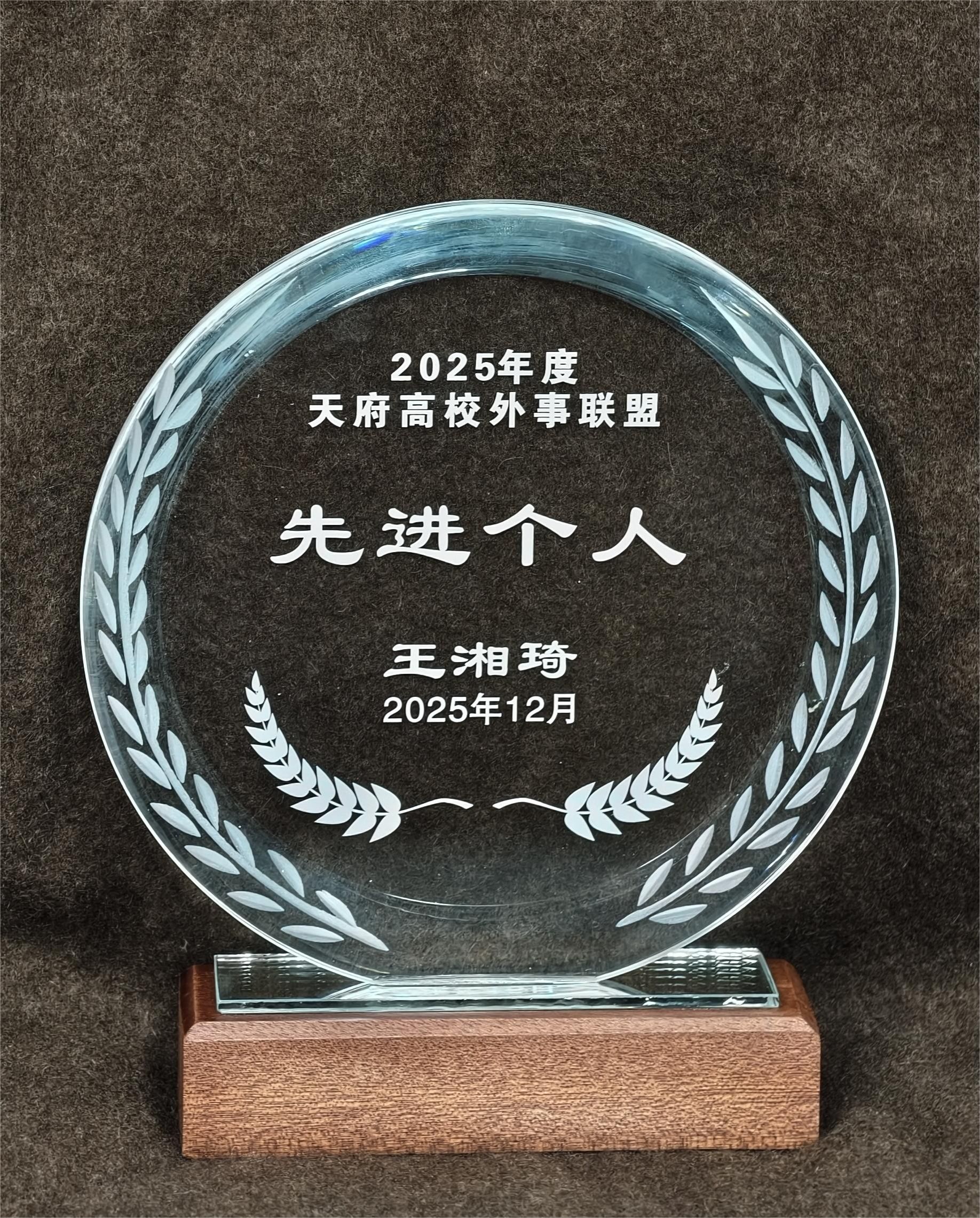 会议期间,天府高校外事联盟对2025年度外事工作先进个人及单位进行表彰。伟德国际victor1946国合处干事王湘琦、苏雯静凭借在留学生管理服务、国际项目推进中的突出表现,荣获“先进个人”称号。此外,伟德因在推动职教国际化、服务“一带一路”建设中的卓越贡献,获颁“2025年度杰出贡献奖”。