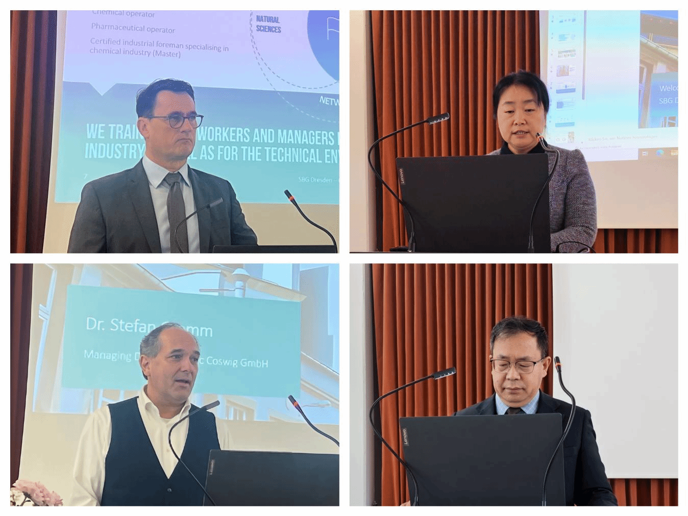 11月17日上午,第7团和第8团开班仪式在德累斯顿萨克森环境保护和化工职业教育机构举行。机构总经理Günthel先生系统介绍了德国职业教育体系特色、区域产业结构以及中德职教合作愿景。中国教育国际交流协会代表吕燕莉、团员代表河北化工医药职业技术学院闫志谦分别发言,阐述了本次培训的目标与期待。培训机构还邀请了德累斯顿工商会(IHK)、总雇主协会(AAGV)、区域化工行业协会(Mipa-Group)等地方行业组织代表出席开班仪式,系统介绍德国职业教育体系特色、区域产业结构及中德职教合作愿景。