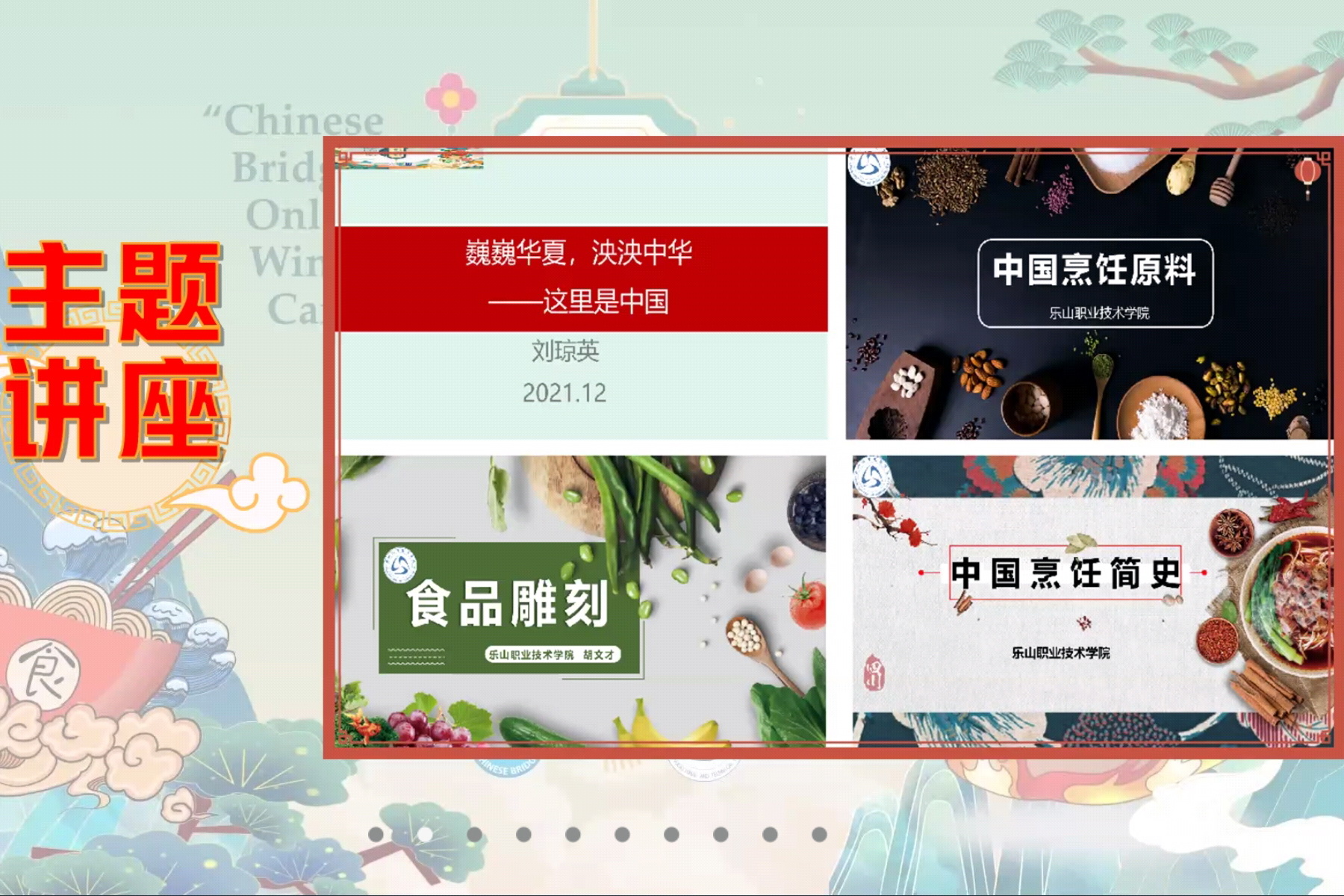 2022年1月21日北京时间上午11时,由中外语言交流合作中心主办,伟德承办的2021年“汉语桥”线上团组(展翅“汉语桥”中文+烹饪工艺)交流活动闭营仪式举行。学院副院长封家福、旅游系主任杨帅、基础公共课程部副主任李澍以及来自“一带一路”70名学员齐聚云端,共同见证了此次活动的完美收官。闭营典礼由教务处副处长邓盼盼主持。