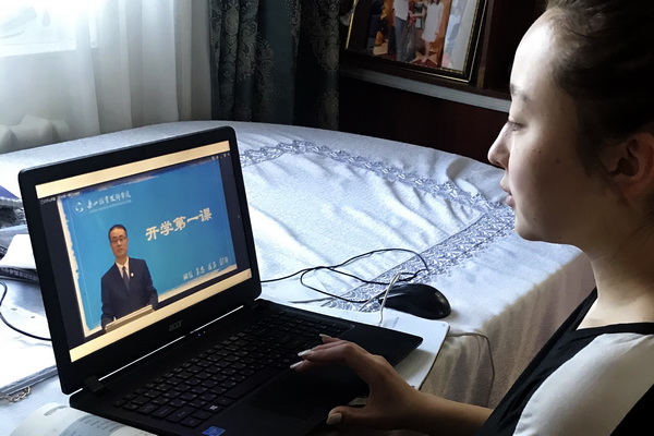 经过周密的部署和测试,3月1日,国际学生们在国内、国外,利用不同的平台通过网络收看学院院长刘忠的《开学第一课》。