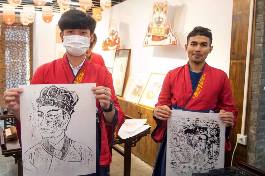 夹江木版年画是留学生们体验到的又一国家级非物质文化遗产,在老师讲述了拓印年画的基本要领后,留学生们小心、认真地操作起来。通过拓印的技法,他们都收获了一张有着美好虎年寓意的年画。
