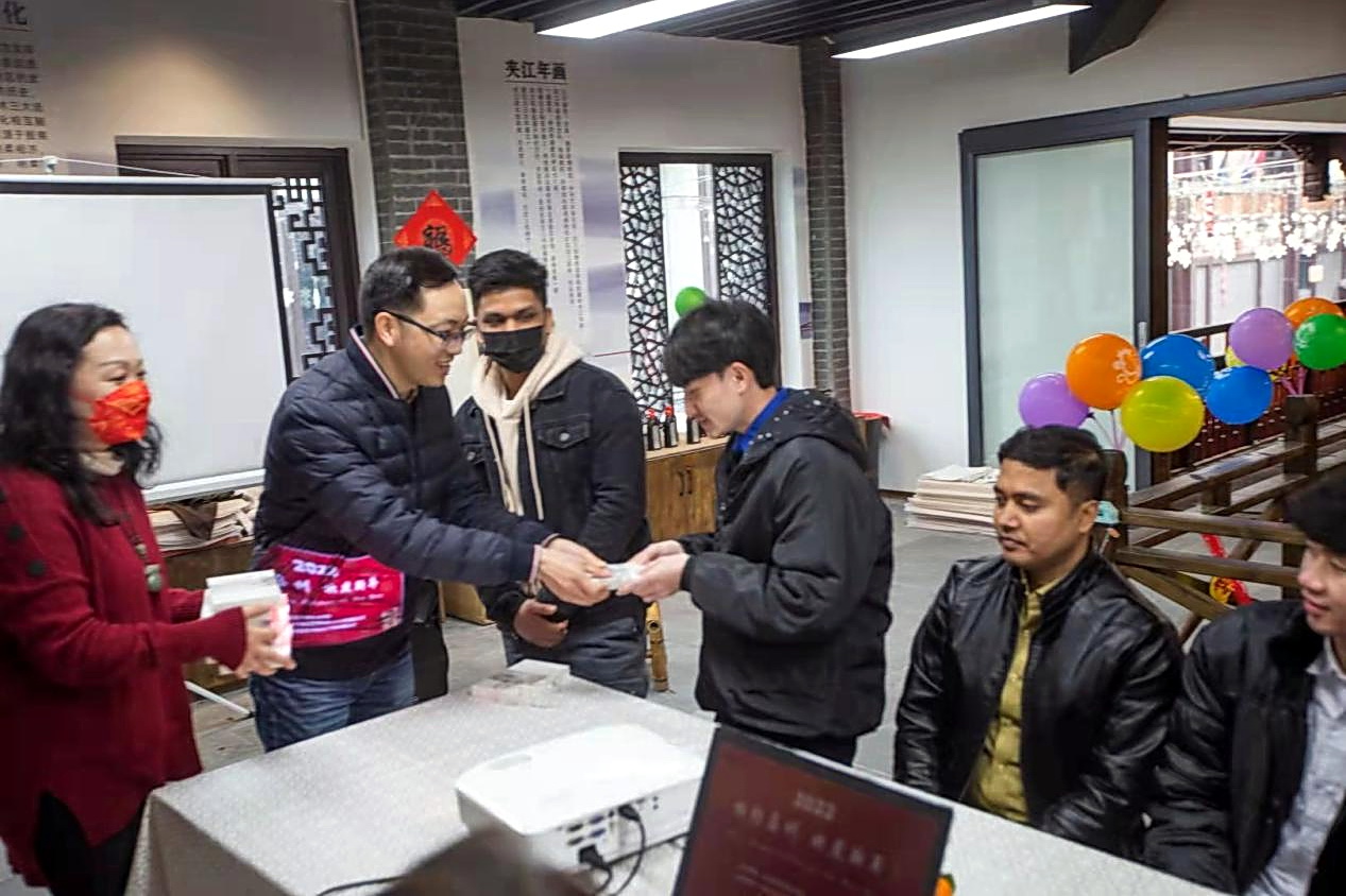 最后代表北方过年的饺子、代表南方过年的汤圆食材端上桌,留学生们在老师们的带领下,学起了包饺子、包汤圆,当留学生们吃着自己包的热气腾腾的汤圆和饺子,拿着代表新春祝福红包的时候,现场气氛非常热烈,欢声笑语交织一片,他们真真切切体会到了“中国年味”!