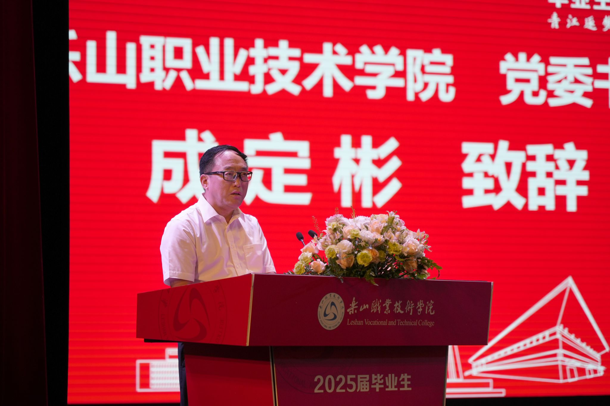 Cheng Dingbin, Secretary of the Party Committee of the school, delivered a speech, congratulating the 2025 graduates on their successful graduation on behalf of the school. He offered guidance for the graduates' future with expectations from "four dimensions": the depth of rooting in the earth and accumulating strength for a breakthrough; the height of unceasingly climbing and harboring aspirations for the vast sky; the warmth of maintaining a dedicated heart like a torch to bring warmth to the world; and the breadth of cross-border integration and daring to break through and innovate. He sincerely wished all 2025 graduates a bright future and the realization of their dreams!
