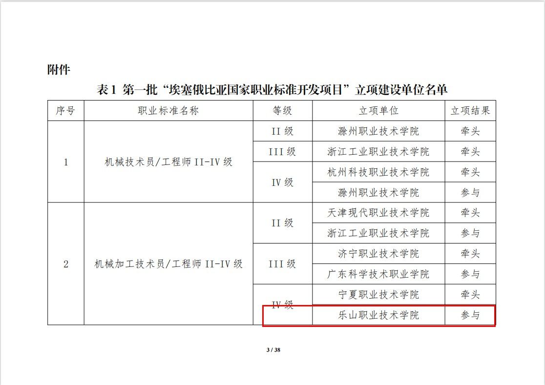 On April 23rd, 2023, the China-Africa Vocational Education Alliance announced the first batch of approved units for the "Ethiopia National Vocational Standards Development Project." After a rigorous process of school application, preliminary review by the alliance, expert evaluation, and public announcement, Leshan Vocational and Technical College was designated as the lead unit for the development of Level 3 Nursing Technician/Engineer and Level 3 Animal Breeding Technician/Engineer standards. Additionally, the college was selected as a participating unit for the Level 4 Mechanical Processing Technician/Engineer standards.