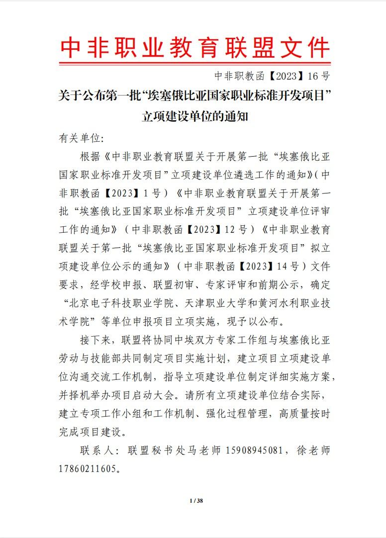 The "Ethiopia National Vocational Standards Development Project" is an initiative by the Ethiopia National Vocational Education and Training Commission to introduce Chinese vocational education resources. It aims to select an equivalent number of Chinese vocational standards tailored to the key industry skill positions in Ethiopia. These standards will be revised to suit local contexts and then registered and certified through Ethiopia's national procedures. Once integrated into Ethiopia's national vocational education system alongside corresponding professional teaching standards, they will guide vocational colleges in Ethiopia in talent cultivation.