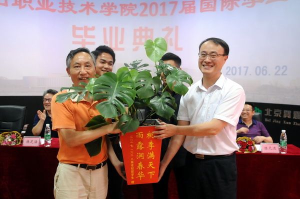 At 3 p.m. on June 22, the graduation ceremony for the Class of 2017 international students was held in the 3D Training Laboratory at the New Village Campus. The ceremony was presided over by Ms. Huang Xiaoli, Director of the International Cooperation Office. In attendance were Secretary Jian Lu of the college’s Party Committee, President Liu Zhong, Deputy Party Secretary and Discipline Inspection Commission Secretary Chen Zhihai, and Vice President Chen Yuanjin.