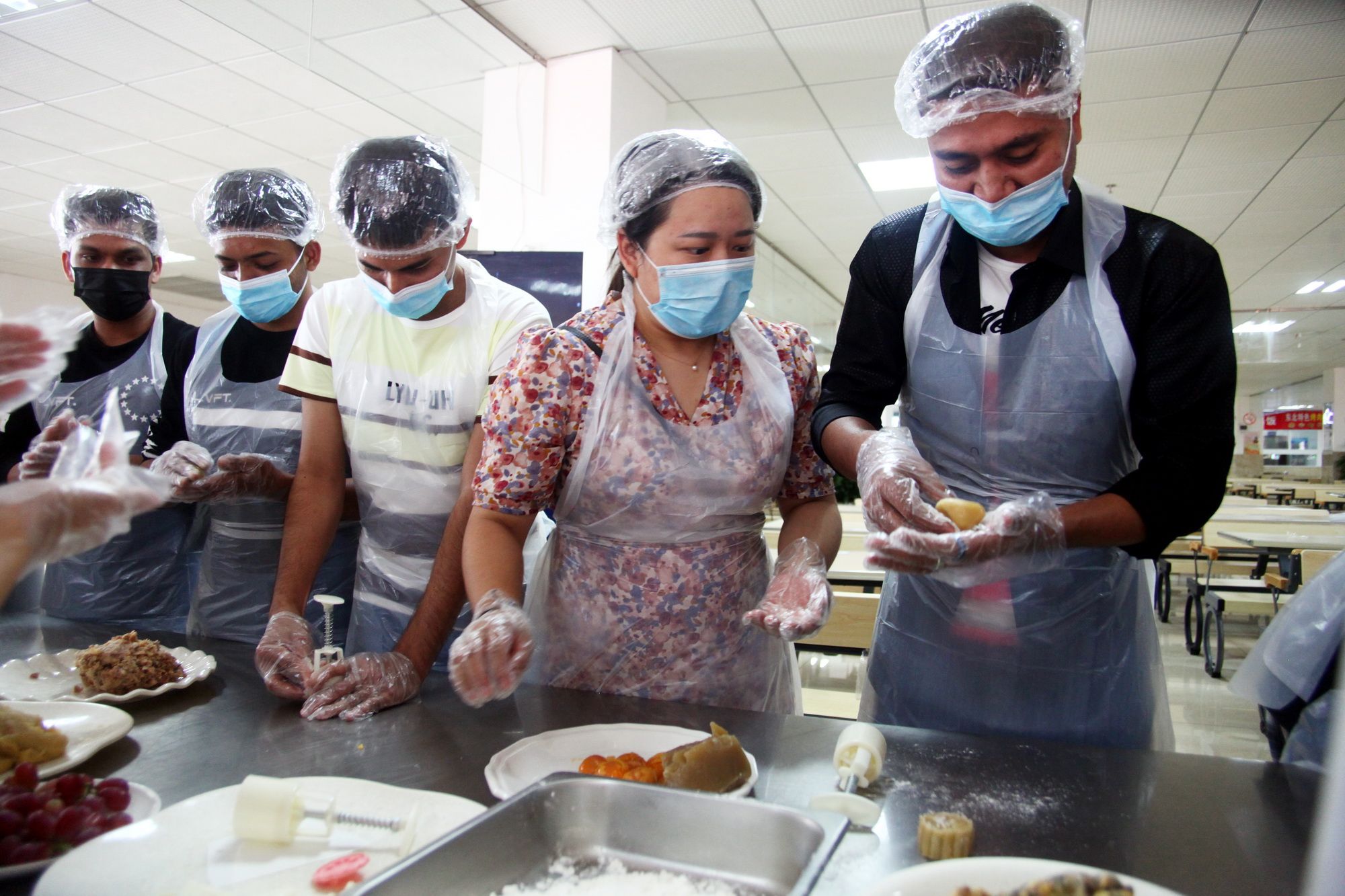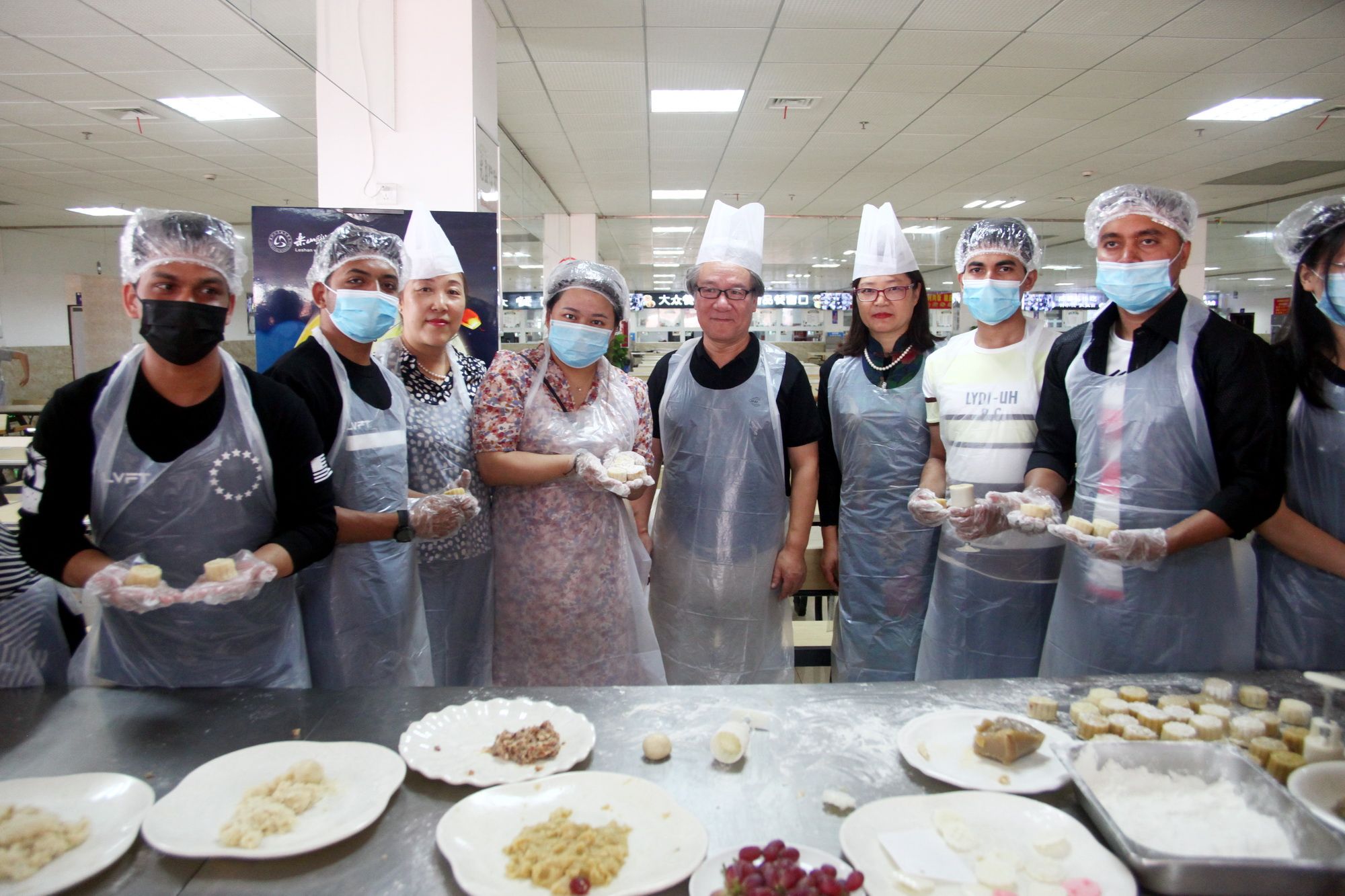 During the event, under the careful guidance of the pastry chef, the international students quickly mastered the skills of making dough, filling, and pressing molds. The students learned diligently, and the teachers provided attentive guidance. Looking at the trays of their labor成果, everyone's faces lit up with bright smiles. Listening to Peking Opera and tasting the mooncakes they made with their own hands, the students expressed their longing for home through the mooncakes and sent blessings from China to their families far away.